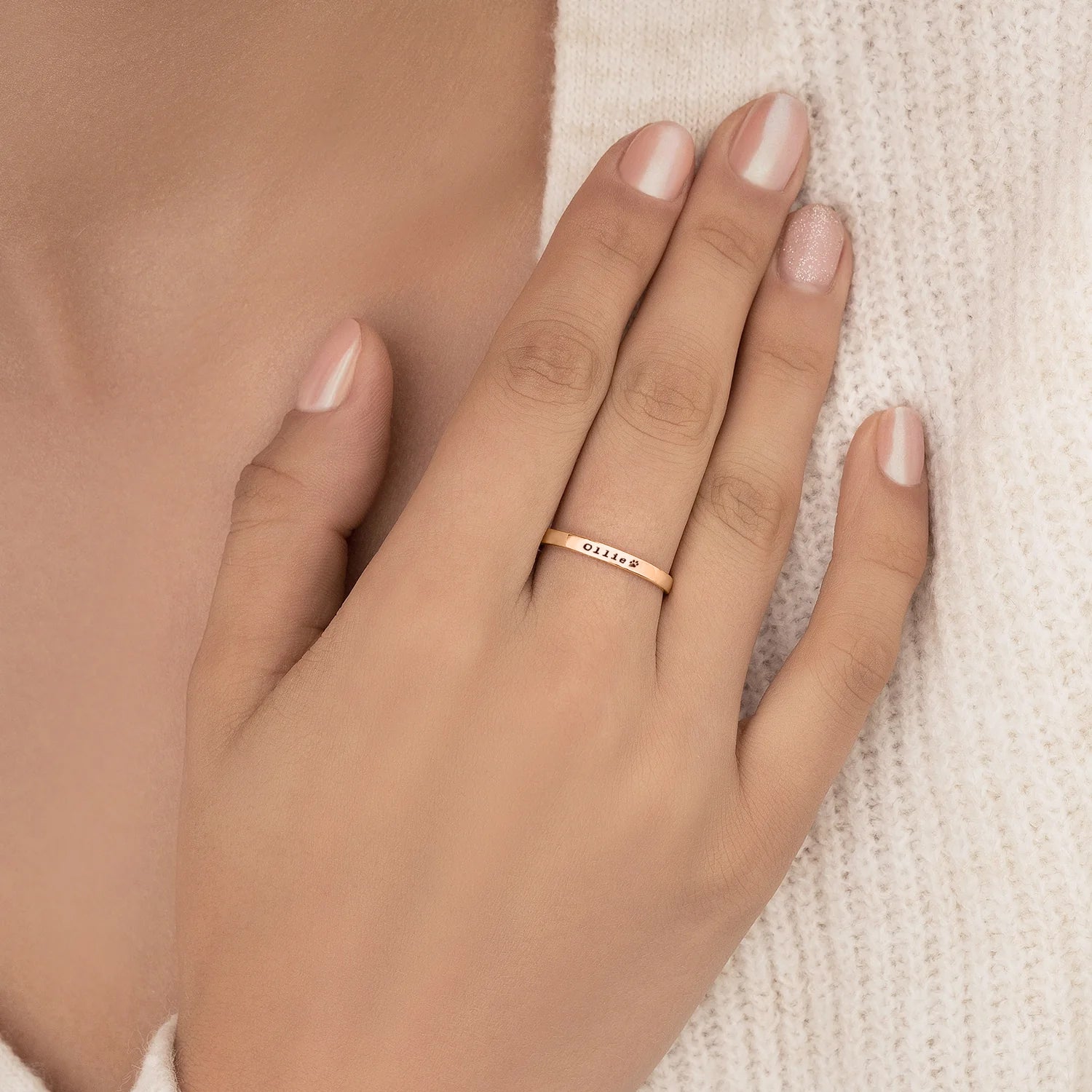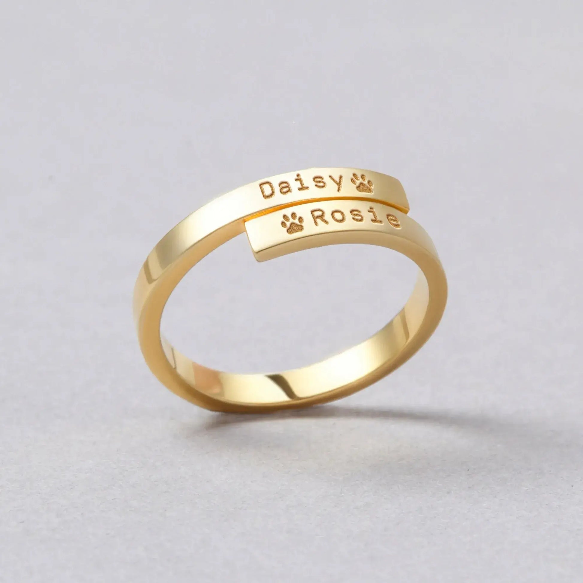 Draag je huisdieren overal met je mee. Onze Huisdier Naam Ring is gegraveerd met hun namen en een kleine pootafdruk.